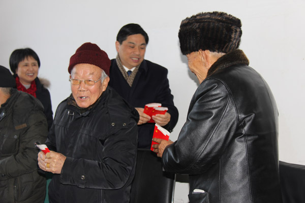 寒冬臘月,雪花飛舞。1月20日下午,水利廳黨委書記、廳長孫曉山率廳人事處處長周江紅、廳離退休干部處副調(diào)研員金光榮、曾三榮一行4人冒著嚴寒來我公司生活基地慰問離退休職工。公司董事長總經(jīng)理王元旦、黨委副書記王延軍、生活基地管理處相關負責人陪同慰問。