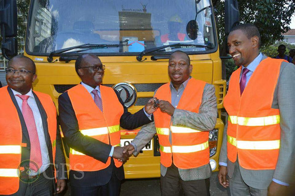 總督Mike Sonko及內羅畢交通局部長James Wainaina Macharia在清污車前合影(左2為部長James,右2為總督Mike Sonka)