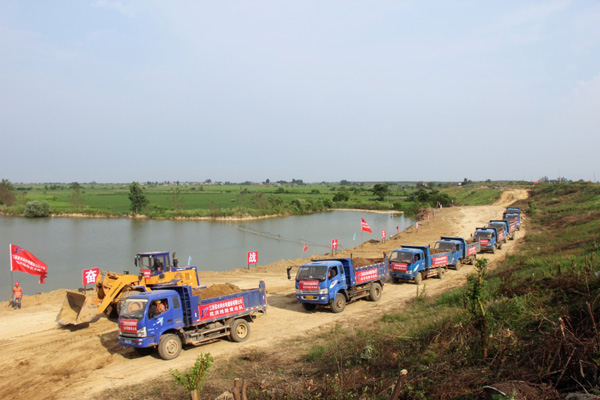 受前期連續(xù)強降雨及長江洪水倒灌、頂托影響,九江市河湖水位長時間處于超警戒水位狀態(tài),導致該地區(qū)防汛形勢十分嚴峻,圩堤險情隨時可能發(fā)生,特別是堤腳處有池塘的圩堤更易出現(xiàn)險情。為確保廬山市沙湖山圩堤長期穩(wěn)固,我司在接到該市防汛指揮部的除險加固任務后,立即派遣抗洪搶險突擊隊前往現(xiàn)場進行搶險,以穩(wěn)固圩堤,確保圩堤內村莊百姓及農田安全。經過現(xiàn)場勘查,突擊隊決定沿著圩堤腳有池塘的地段填出一條長約1公里、寬20米的壓浸平臺進行加固處理。搶險方案確定后,公司迅速組織了3臺挖掘機、2臺裝載機、36臺自卸汽車等機械設備及40多名作業(yè)人員頂著炎炎烈日進行施工,力求在10天內完成搶險任務,確保圩堤安全。